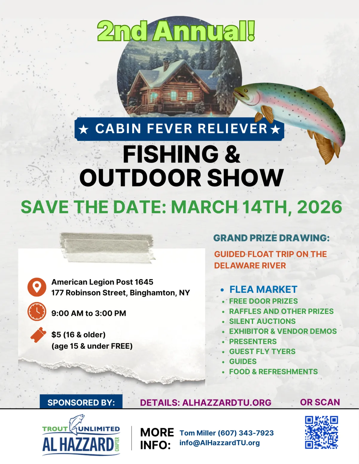 Join us for this FREE event for great time showing kids all the fun of fishing! We’ll have volunteers on hand to show kids how to tie flies, use lures, cast, and more! Door prizes and drawing for all the kids. Free hot dogs, chips and soda!